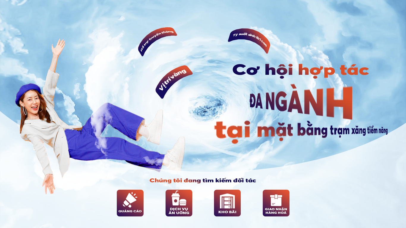 Chúng tôi sở hữu mạng lưới mặt bằng tại các trạm xăng có vị trí thuận lợi, phù hợp để triển khai các mô hình dịch vụ, quảng cáo, logistics, ăn uống và nhiều ngành nghề khác.