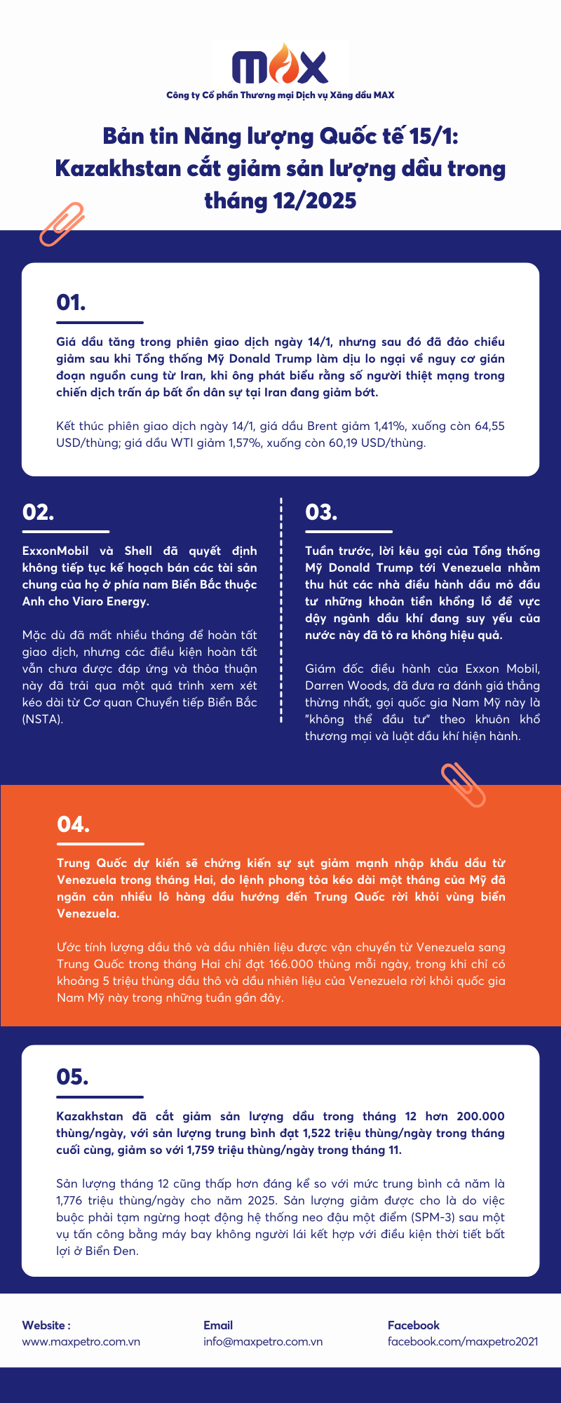MAX PETRO xin gửi đến Quý độc giả Bản tin năng lượng quốc tế 15/01/2026!