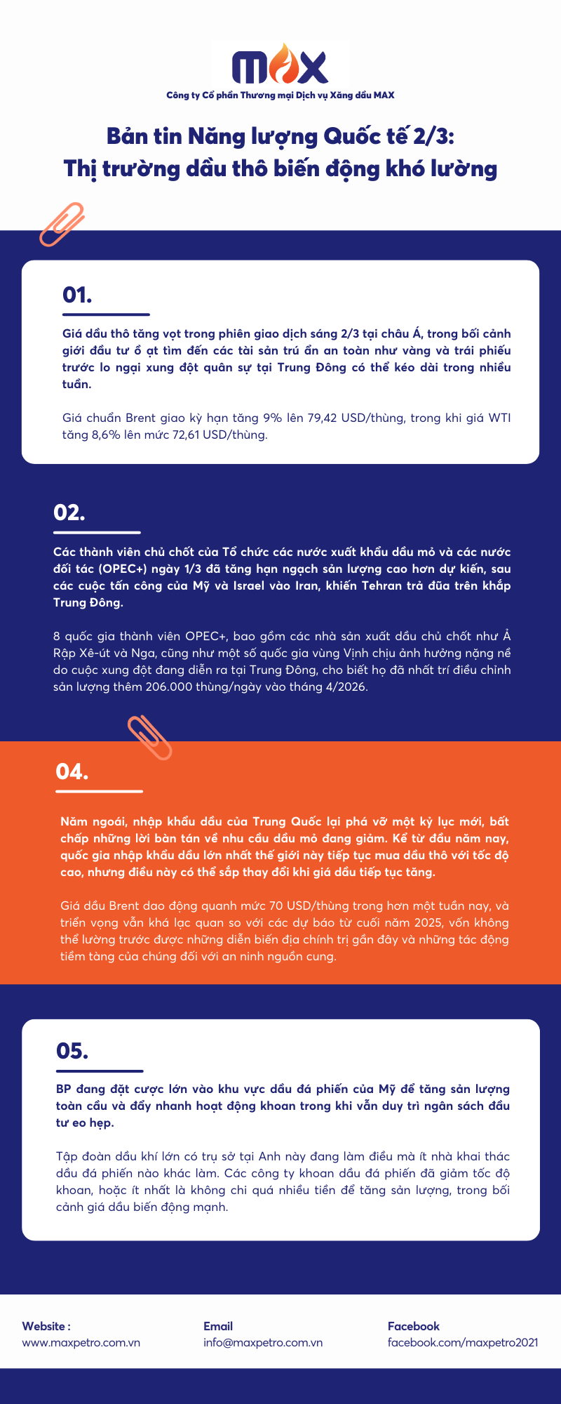 MAX PETRO xin gửi đến Quý độc giả Bản tin năng lượng quốc tế 02/03/2026!
