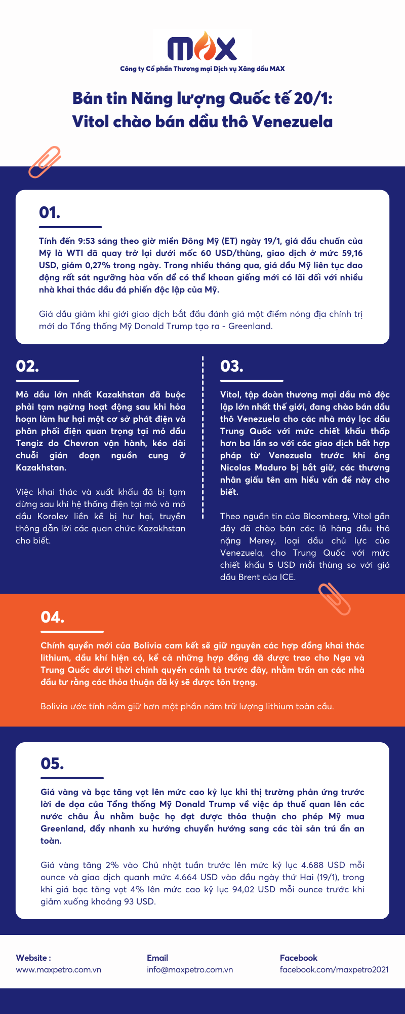 MAX PETRO xin gửi đến Quý độc giả Bản tin năng lượng quốc tế 20/01/2026!