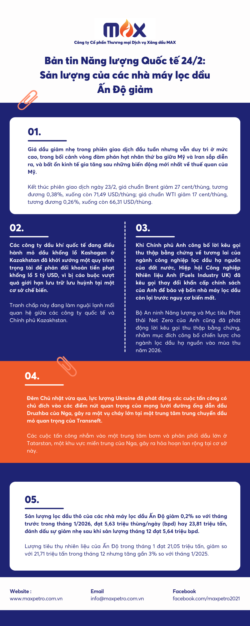 MAX PETRO xin gửi đến Quý độc giả Bản tin năng lượng quốc tế 24/02/2026!