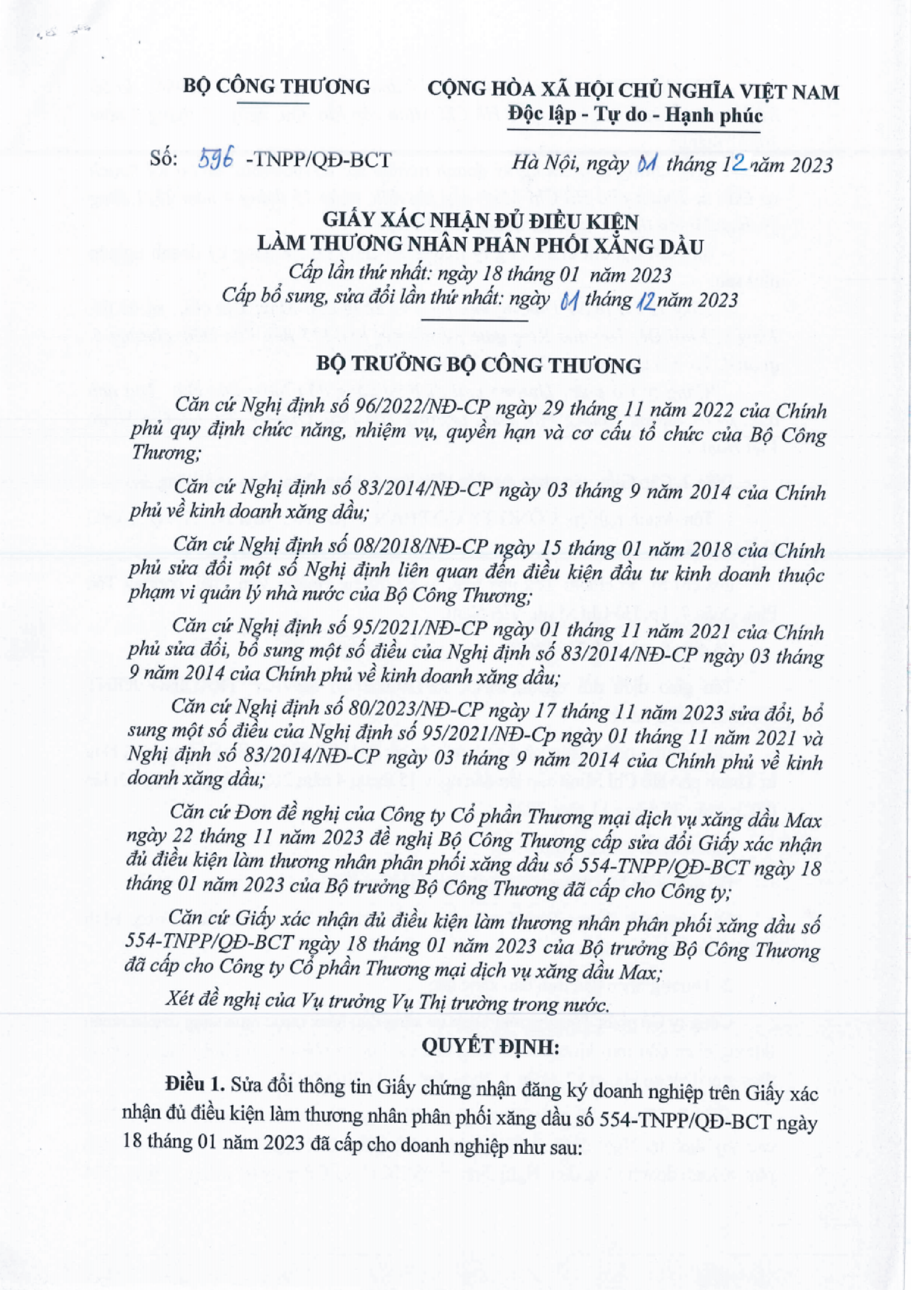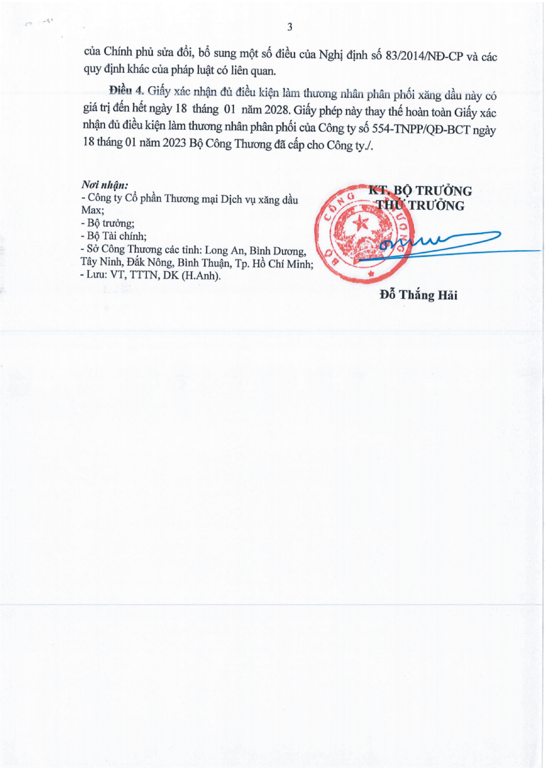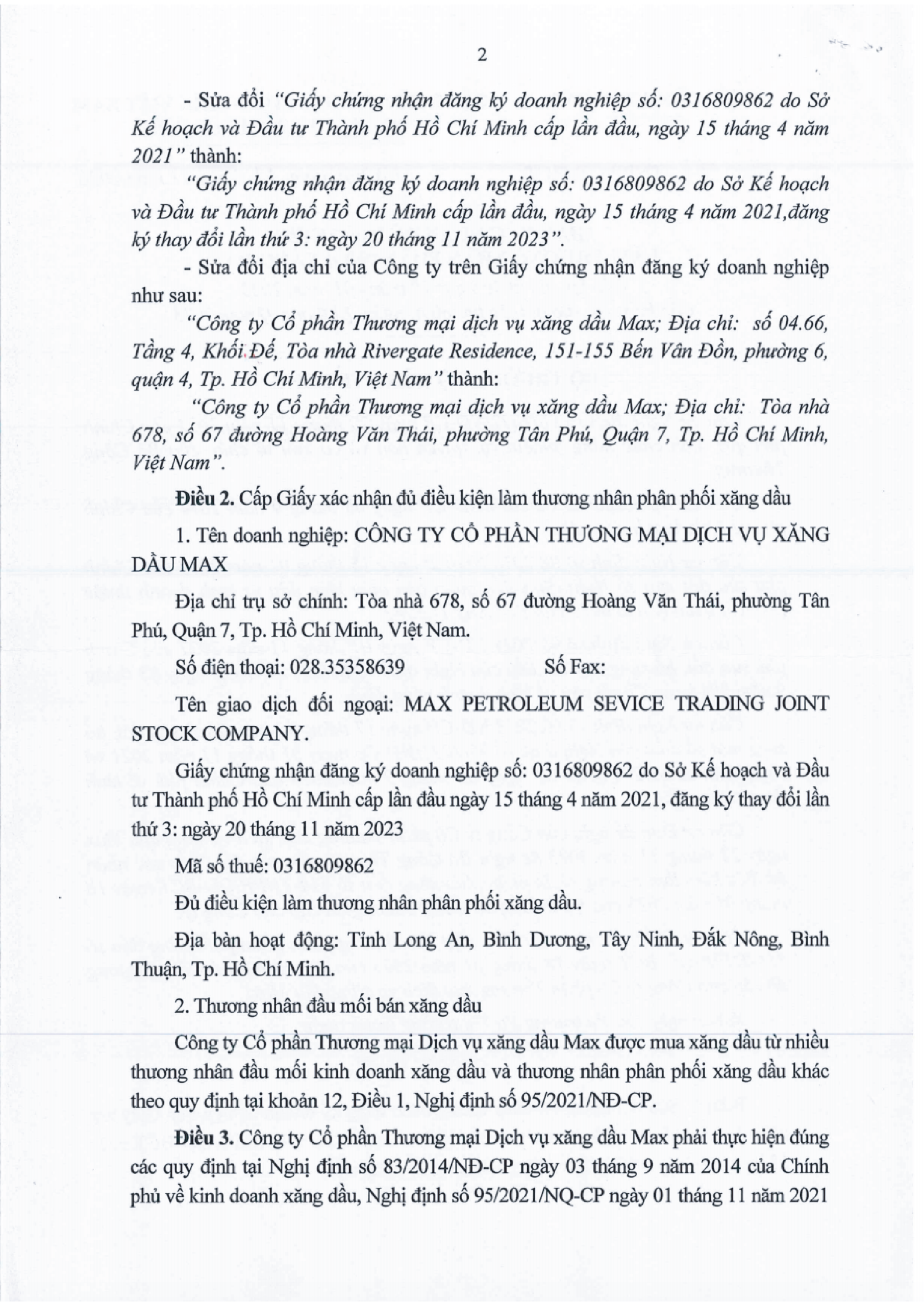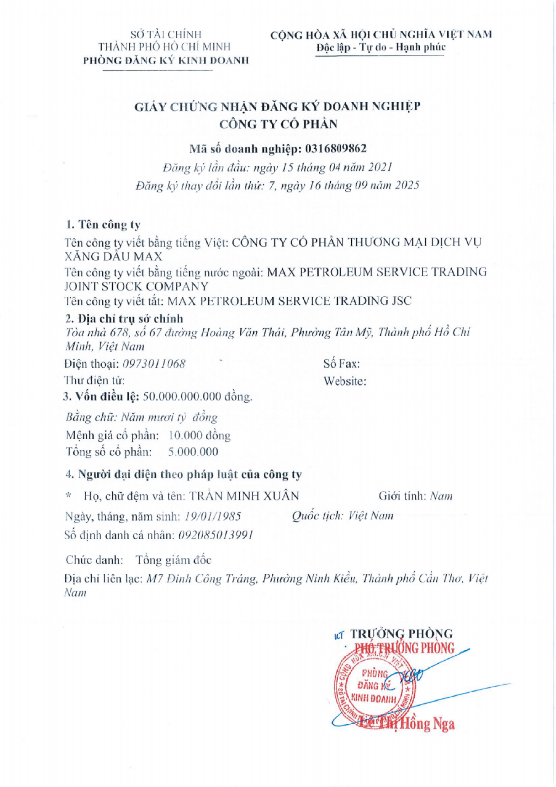 Hồ sơ pháp lý đầy đủ, rõ ràng là nền tảng để MAX PETRO khẳng định sự chuyên nghiệp và xây dựng niềm tin vững bền cùng khách hàng, đối tác.