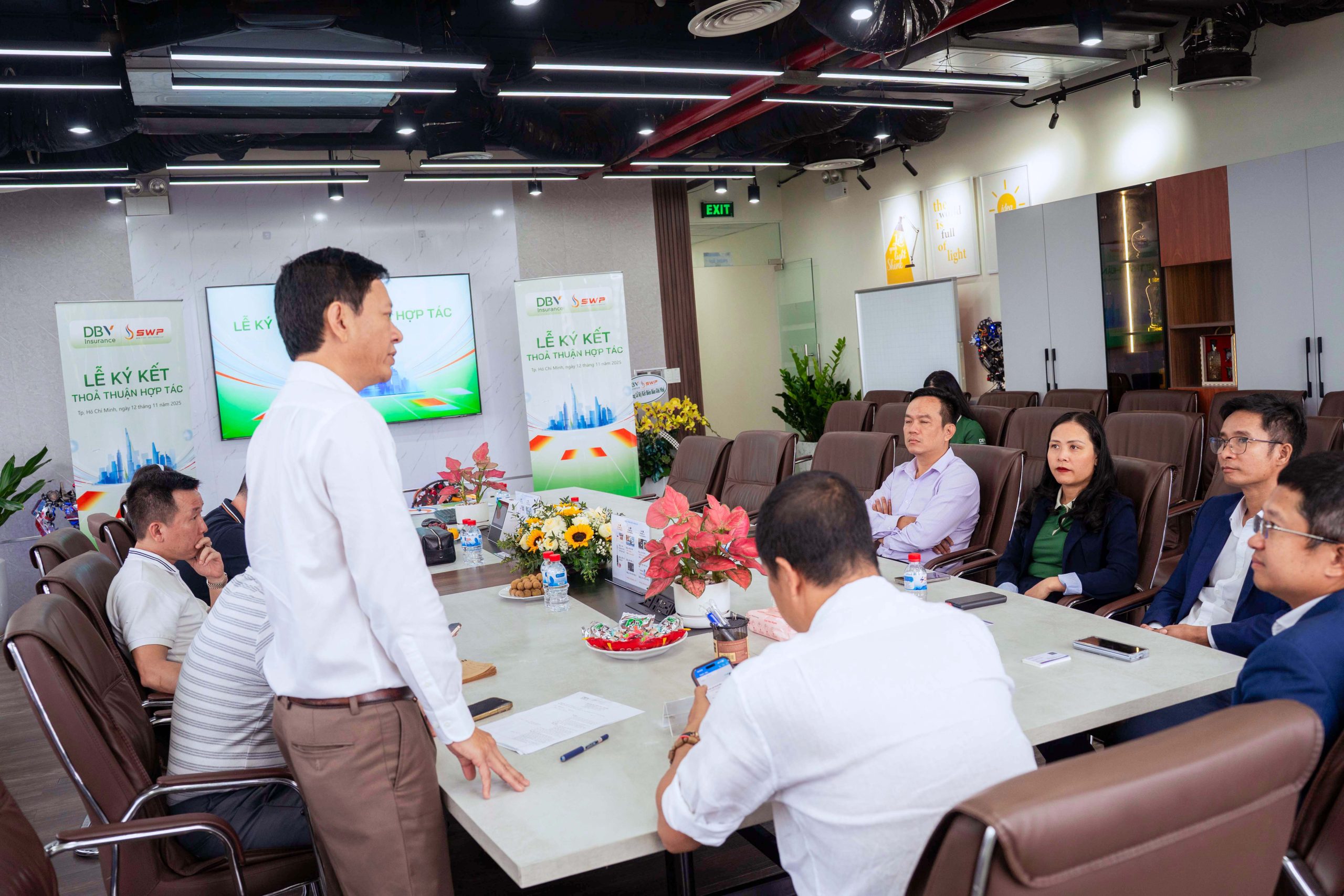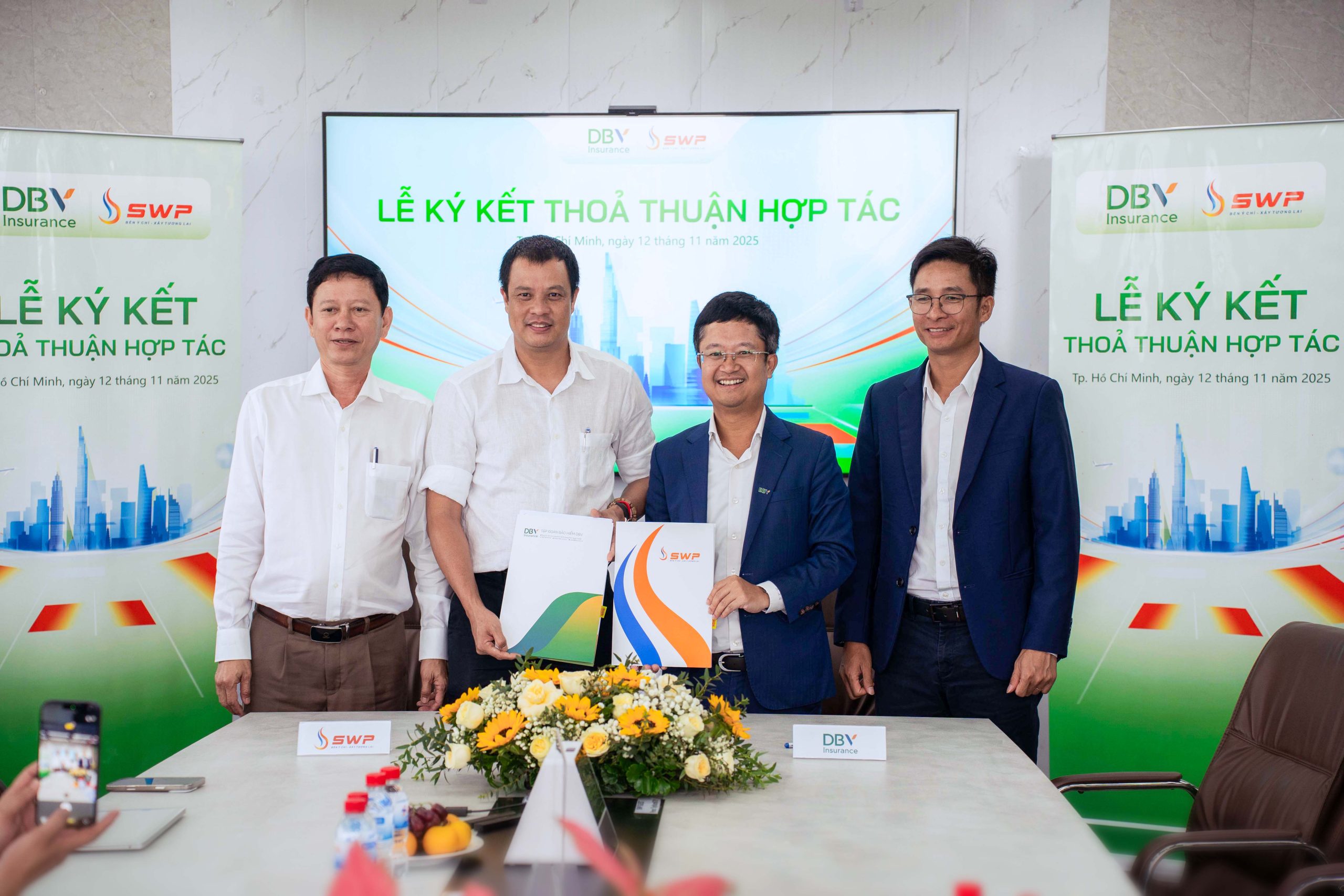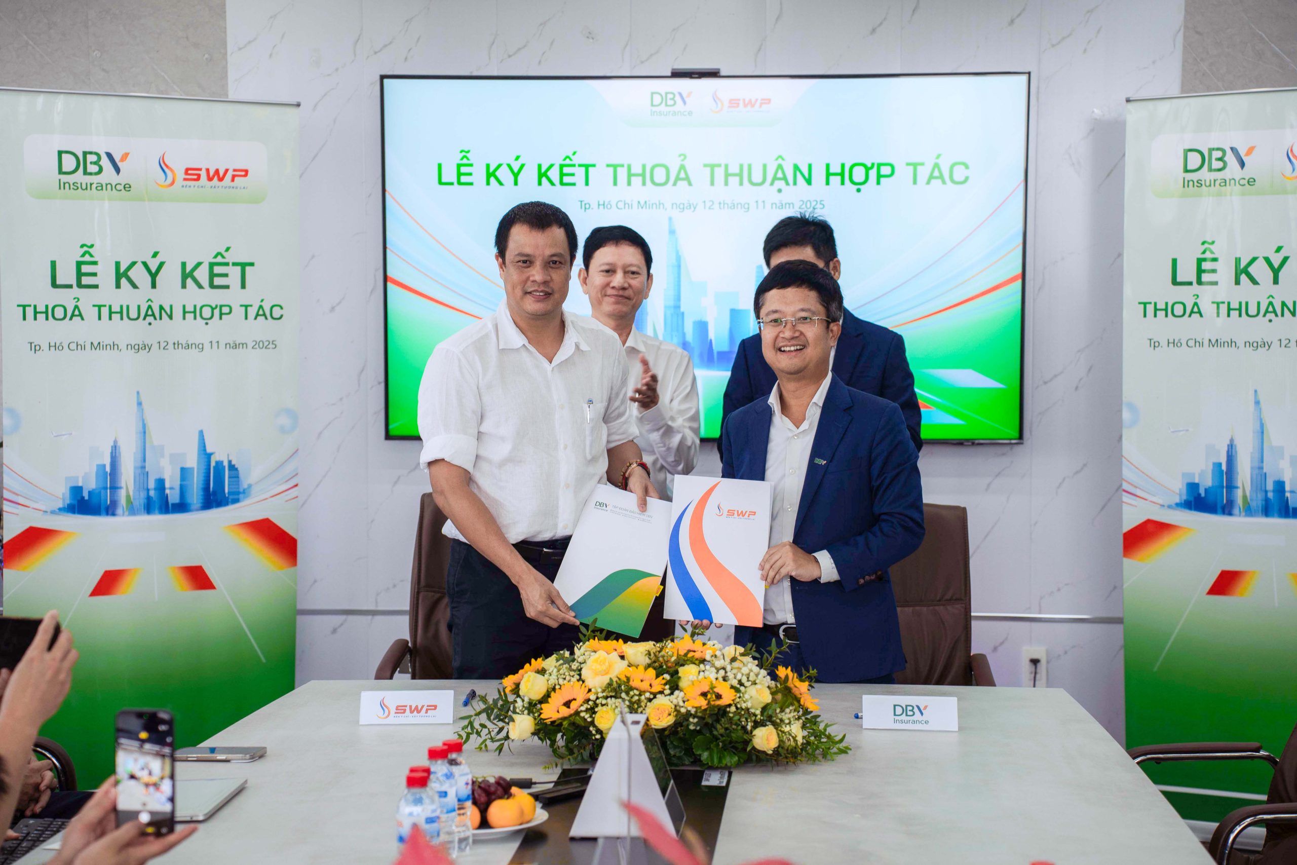 Sáng ngày 12/11/2025, tại Tầng 10, Toà nhà 678, đã diễn ra Lễ ký kết Thỏa thuận Hợp tác Kinh doanh giữa Công ty TNHH Xăng dầu Tây Nam S.W.P (viết tắt: Tây Nam S.W.P) và Tập đoàn Bảo hiểm DBV.
